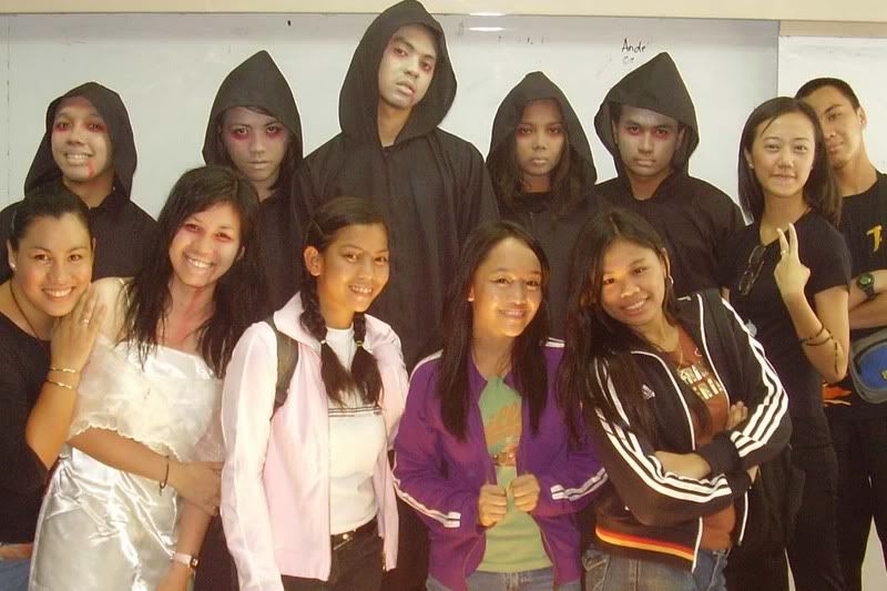 Kanina, nasa bahay ako nila Pat. Kami nila Grace, Yuumi at malamang.. si Pat. Naglagari, nagmartilyo, nagpulupot, nagsara at kung anu ano pang "Nag" ang ginawa ko dun. Umuwi ako ng mga past 11 na, may nakasabay pa kaming "high" ni Grace.. nakakatakot sya.